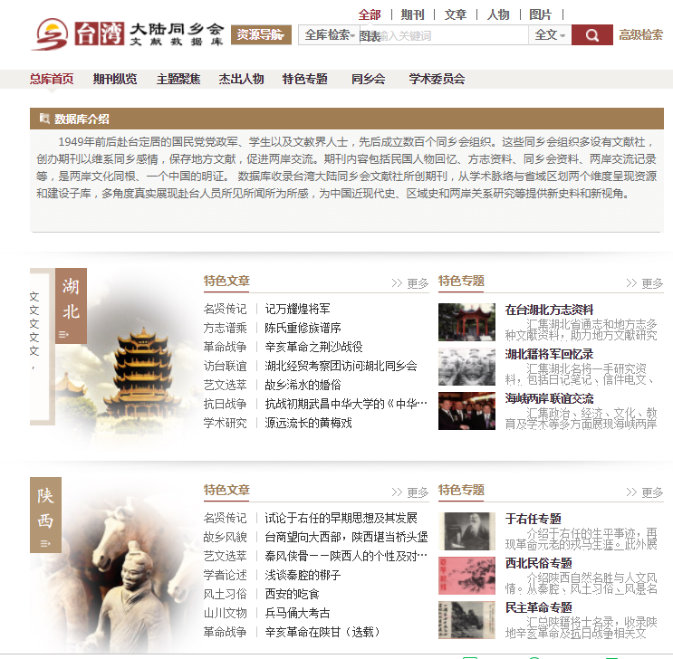 《台湾大陆同乡会文献数据库》
